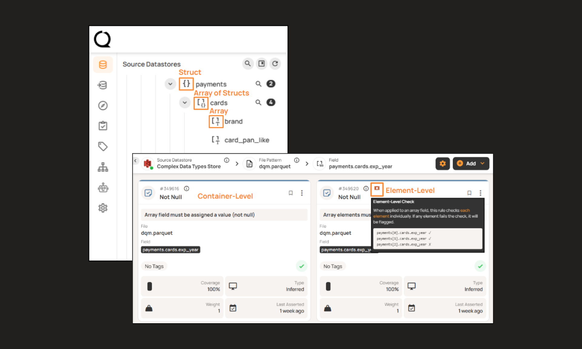 Using the profiles, Qualytics generates automated rules that cover 95%+ of your data quality needs. Business and technical users can add their own rules, unlocking full, contextual coverage without the heavy manual lift.
